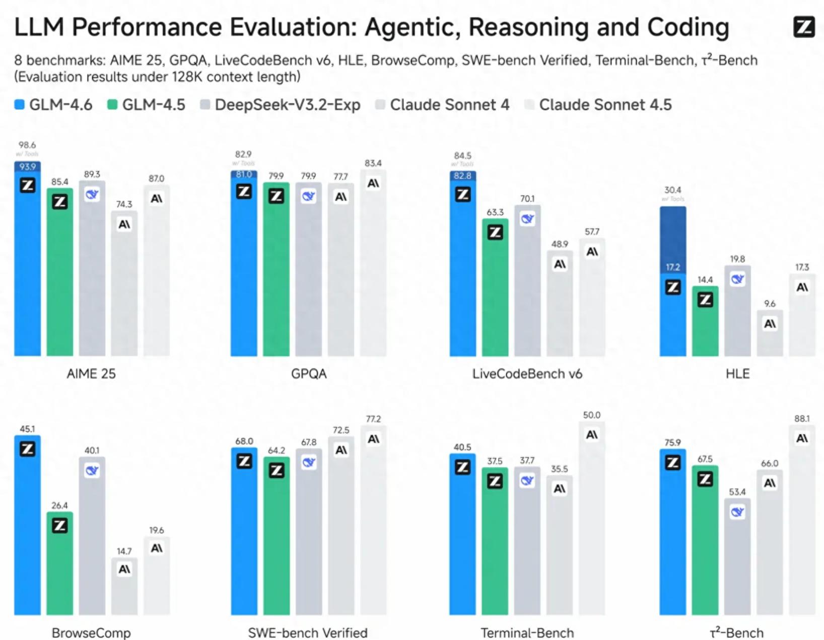 根据官方发布的信息,GLM-4.6在公开基准和实际编程任务中展现出与Claude Sonnet 4相当的代码能力;此外,其上下文窗口也从128K扩展至200K,以便处理更复杂的代码和智能体任务。该模型在推理方面的能力得到了增强,且允许在推理时调用工具;在搜索功能上,模型的工具调用和搜索智能体也得到了进一步提升。