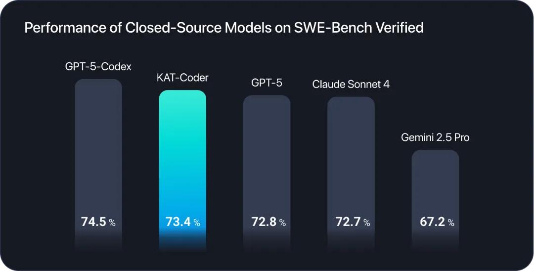△KAT-Coder-Pro V1在SWE-bench Verified榜单上超越了GPT-5与Claude Sonnet 4的表现