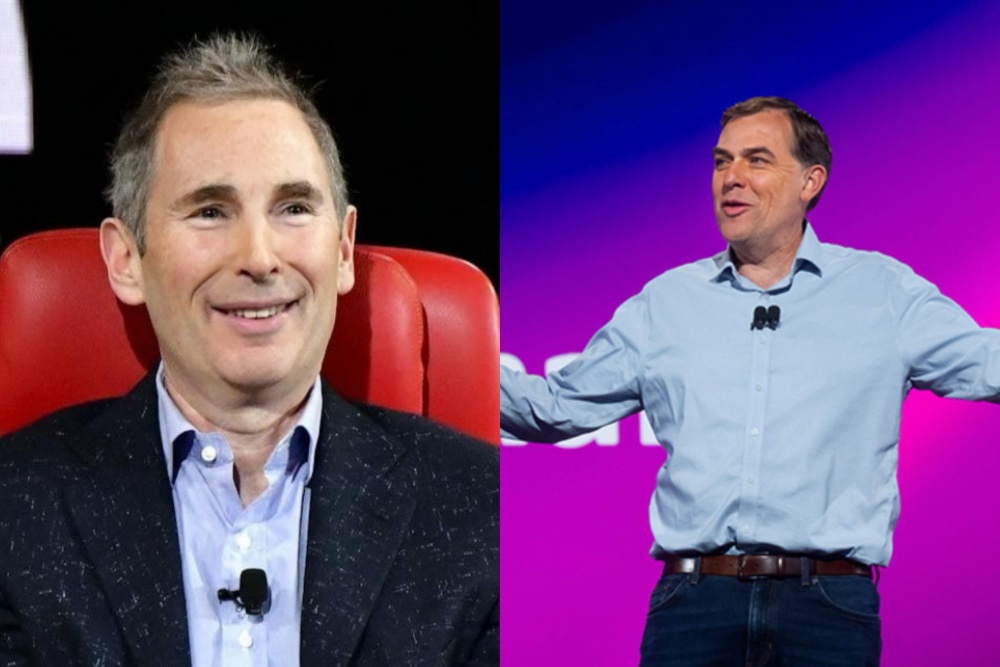 (左)亚马逊前CEO兼董事会成员安迪·贾西与(右)亚马逊现任CEO马特·加曼