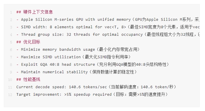 - 富含上下文信息的提示词:为进化过程提供的提示词包含了性能数据、硬件规格和优化方向指南。