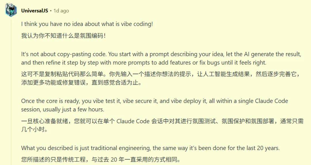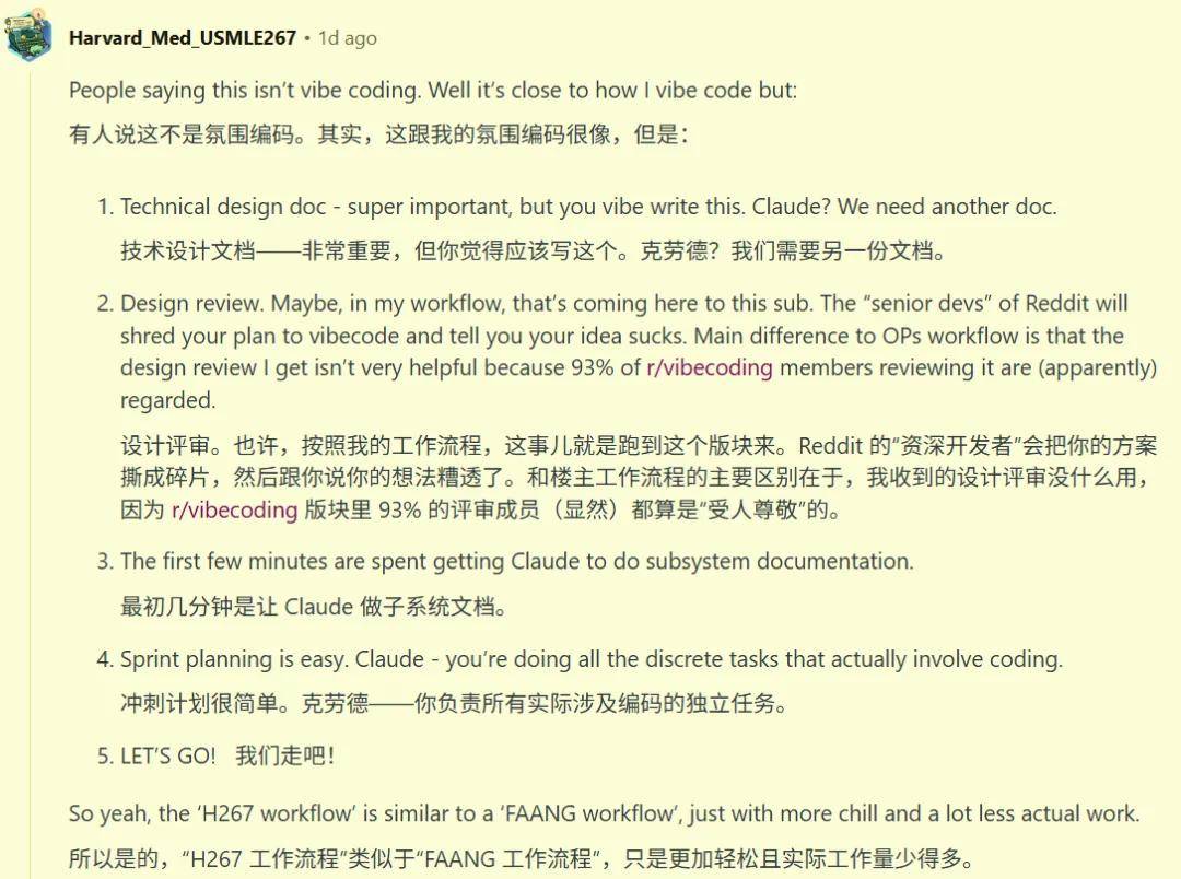 然而,有观点认为,从该帖子中所述的流程来看,称之为“氛围编程”并不恰当,因为其中依旧需要大量人类的参与。这也许正是该帖引发争议的核心所在。
