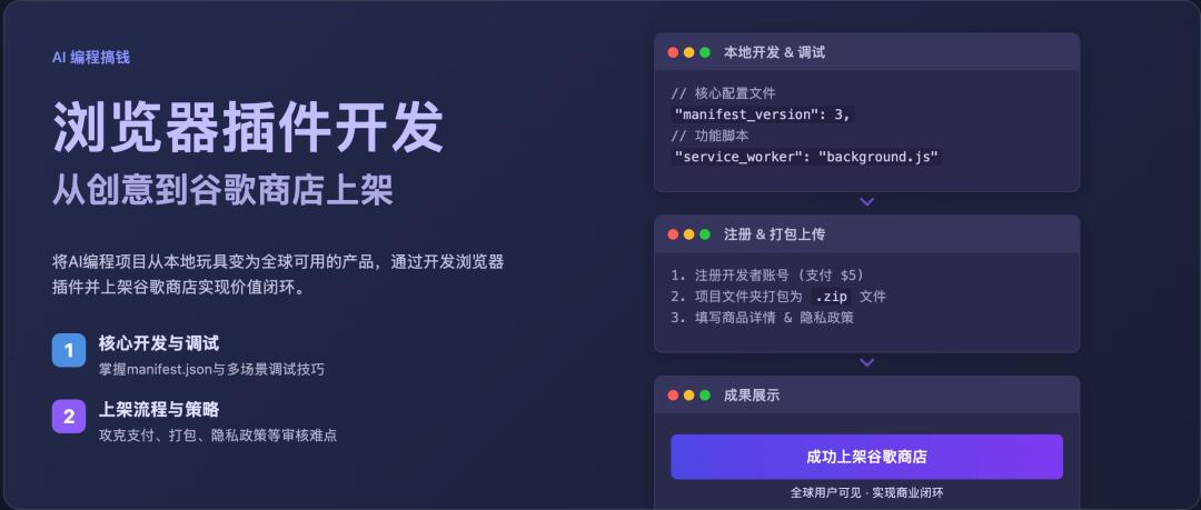 说实话,开发的东西如果只在本地跑,那永远只是个玩具。真正的落地闭环,是把它发布出去,让全世界的用户都能用上。 对我们这些开发者来说,最直接的路径就是:开发浏览器插件,上架谷歌商店。