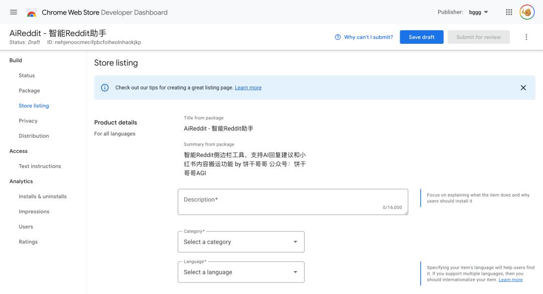 - 信息 & 隐私填写:这是“面子工程”,也是审核的重灾区,决定了你的插件能不能见人。