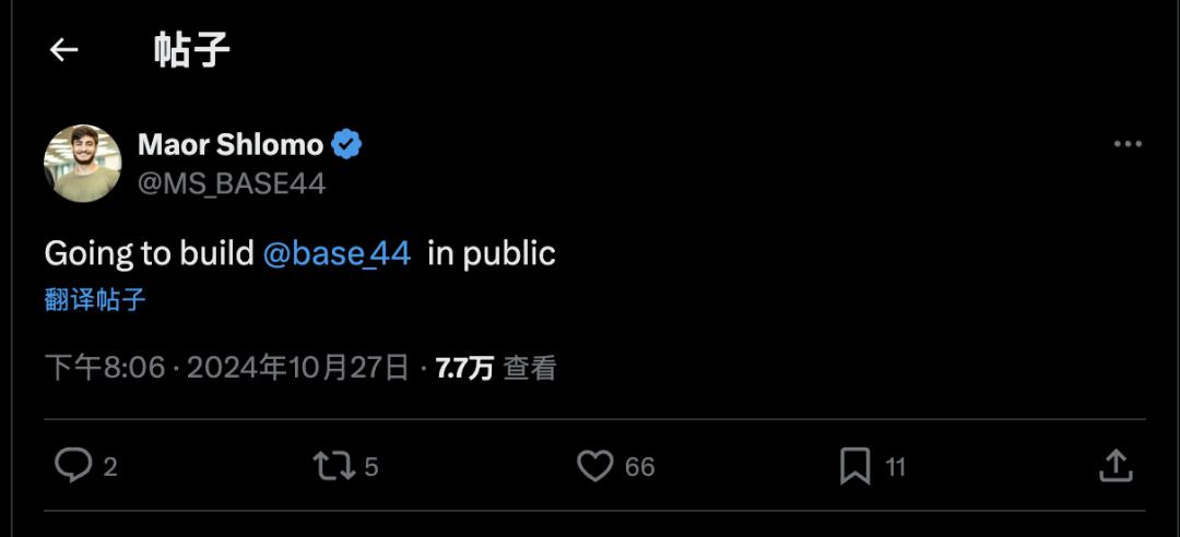然而,他并没有直接投入工作,而是选择先在推特上发声,向世界展示他的产品构想,并承诺将整个开发过程公开,邀请大家共同见证Base44的成长。