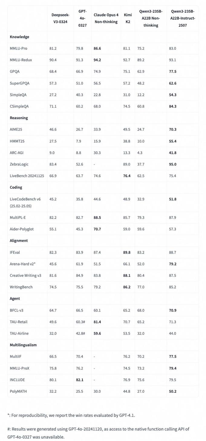 Qwen3-235B-A22B-Instruct-2507-FP8,正是“快速思考”发展下的最新成果。它专注于非思考模式(Non-thinking),旨在指令遵循、文本理解和知识问答等任务中实现更快、更准确、更强大的表现~