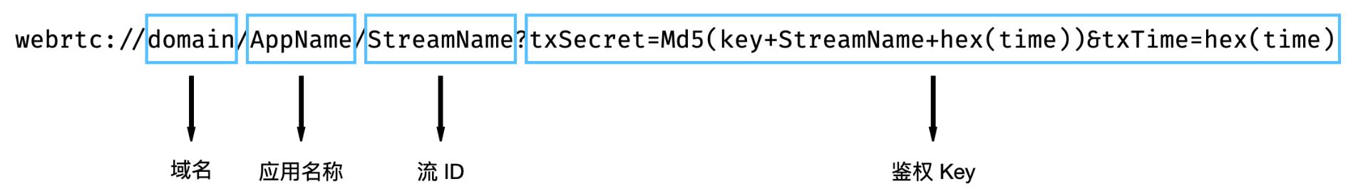 livePusher.startPush('webrtc://domain/AppName/StreamName?txSecret=xxx&txTime=xxx');