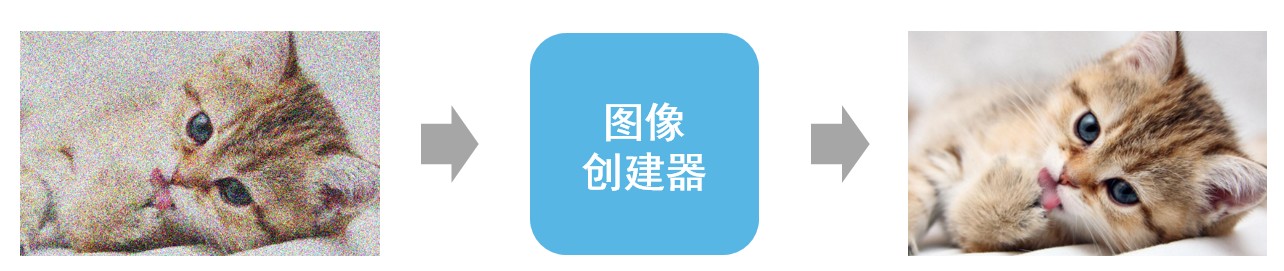 回到刚才提到的去噪过程。假设我们要训练一个大型模型,可以称之为“图像生成器”。这个模型的作用是从噪声图像中去除噪声,从而生成清晰明了的图像。具体而言,模型中的蓝色部分负责实现从含噪图像到清晰图像的转变。