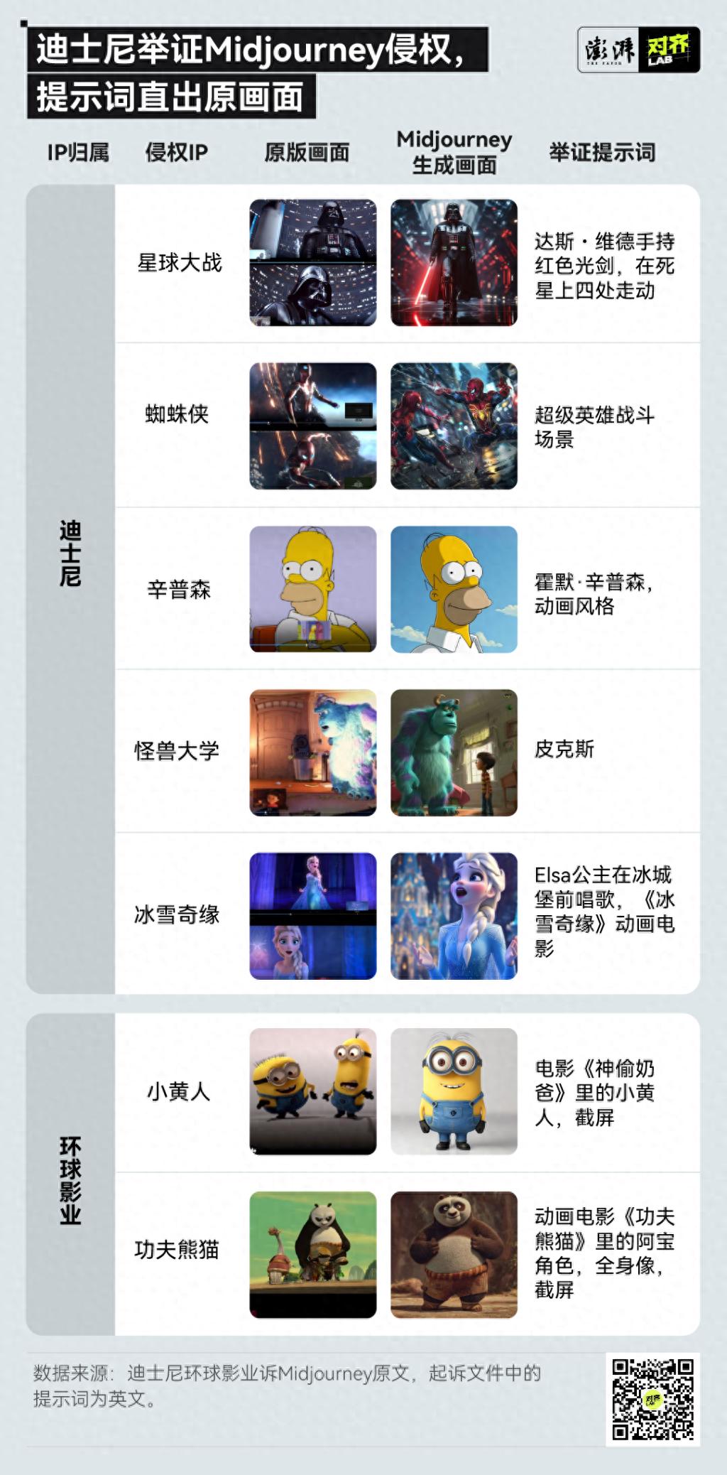 据不完全统计,迪士尼和环球影业在诉状中指出,其被侵权的IP超过15个,累计全球收入超过1738亿美元。根据界面新闻的报道,迪士尼高级执行副总裁兼首席法律与合规官霍拉西奥·古铁雷斯表示:“我们的世界级IP是基于数十年的投资、创意和创新建立的,盗版就是盗版,AI公司的行为并不会减轻其侵权的性质。”