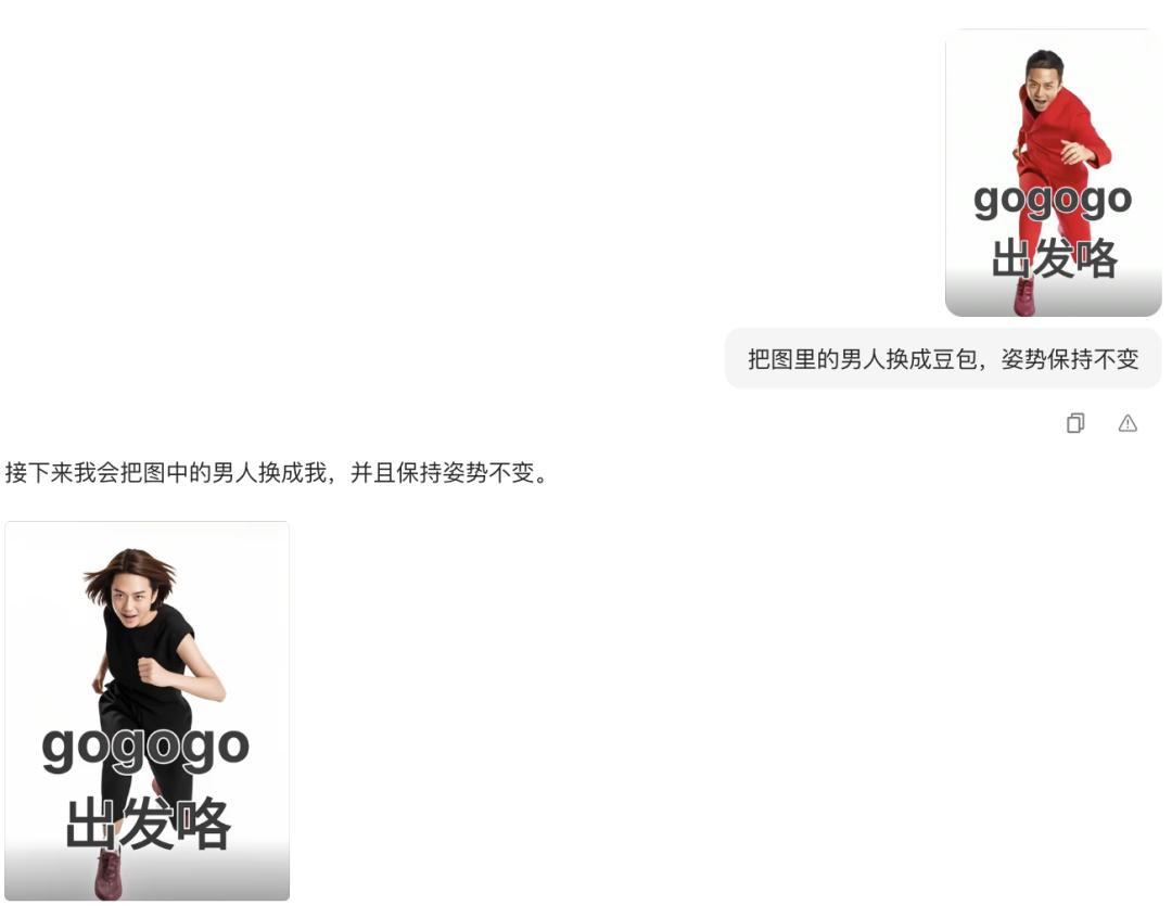 然而,在实际操作中,我们也发现了豆包的一些不足之处。比如,让豆包将“gogogo出发咯”的邓超梗图转变为豆包的3D形象,最终生成的图像依然是邓超,只不过变成了“女装大佬版邓超”。