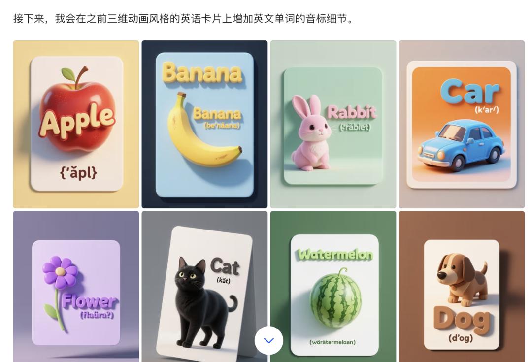 当对话内容过长或需求复杂时,比如希望为英语单词添加音标细节,生成的图片可能会出现问题。