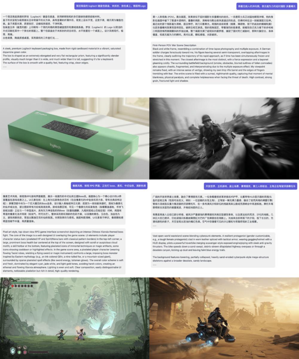 以下是应用该提示框架生成的效果图,涵盖了“游戏、产品、影视、家装、UI、艺术、摄影”等各个设计领域: