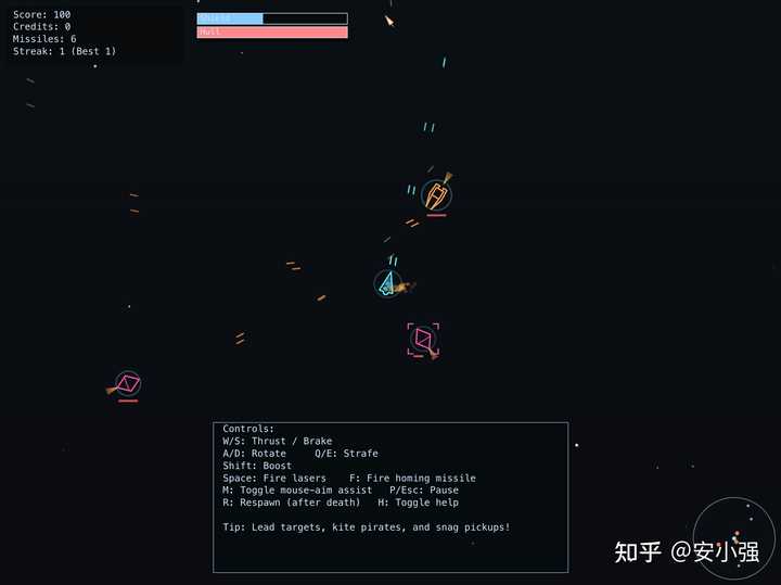 制作一个2D太空游戏,玩家可以驾驶飞船,躲避和摧毁小行星,并与其他计算机控制的AI进行空战。