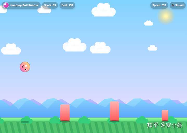 - 目标:跳跃越过障碍物,尽可能延续生存时间。