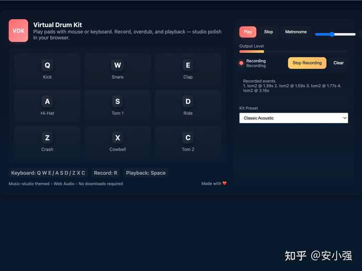 - UI应呈现音乐工作室风格,设计精致现代,尽量美观。