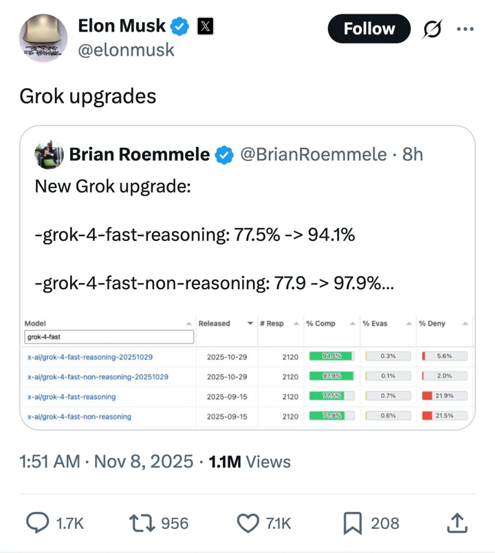 这次马斯克显得相当低调,没有进行过多的宣传,便悄然完成了Grok-4-Fast的更新。