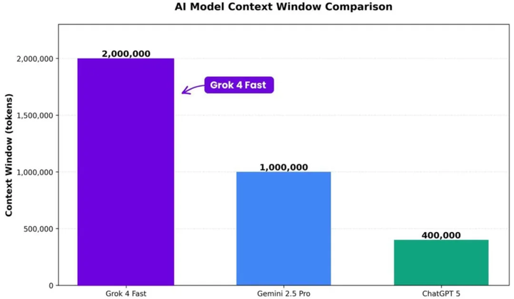 在此次Grok-4-Fast的更新中,最引人注目的便是“超大上下文窗口”——具备200万token的上下文能力。