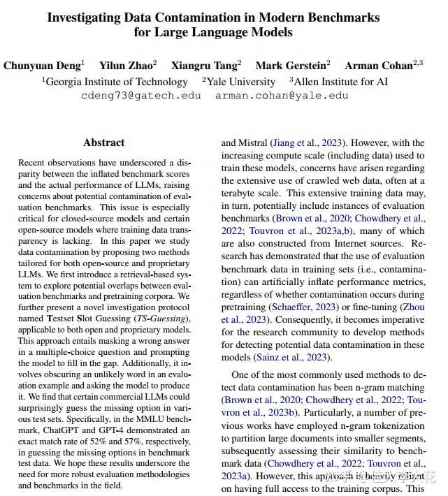 大型模型在训练过程中可能已经“接触”过评测基准的测试数据,这一现象被称为数据污染。