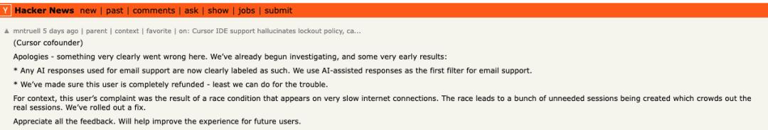 随后,Cursor 的联合创始人 Michael Truell 也在 Hacker News 上发表道歉,承认此次误会确实对用户造成了困扰: