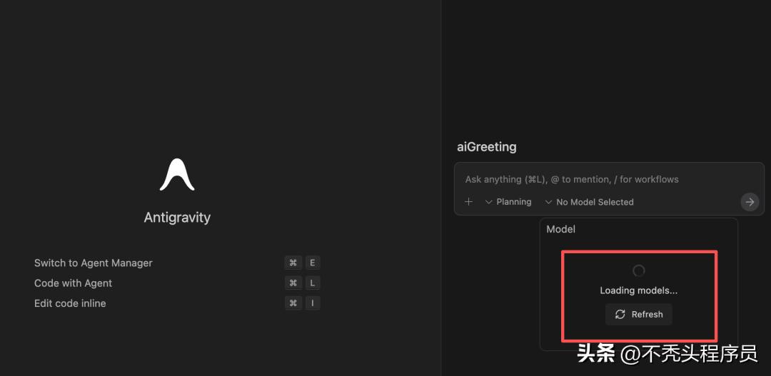 Antigravity的整体结构与cursor相似,左侧为文件列表,右侧则是AI对话与协作的窗口。这一设计是在VS Code的基础上,增加了AI代理操作系统的层次。