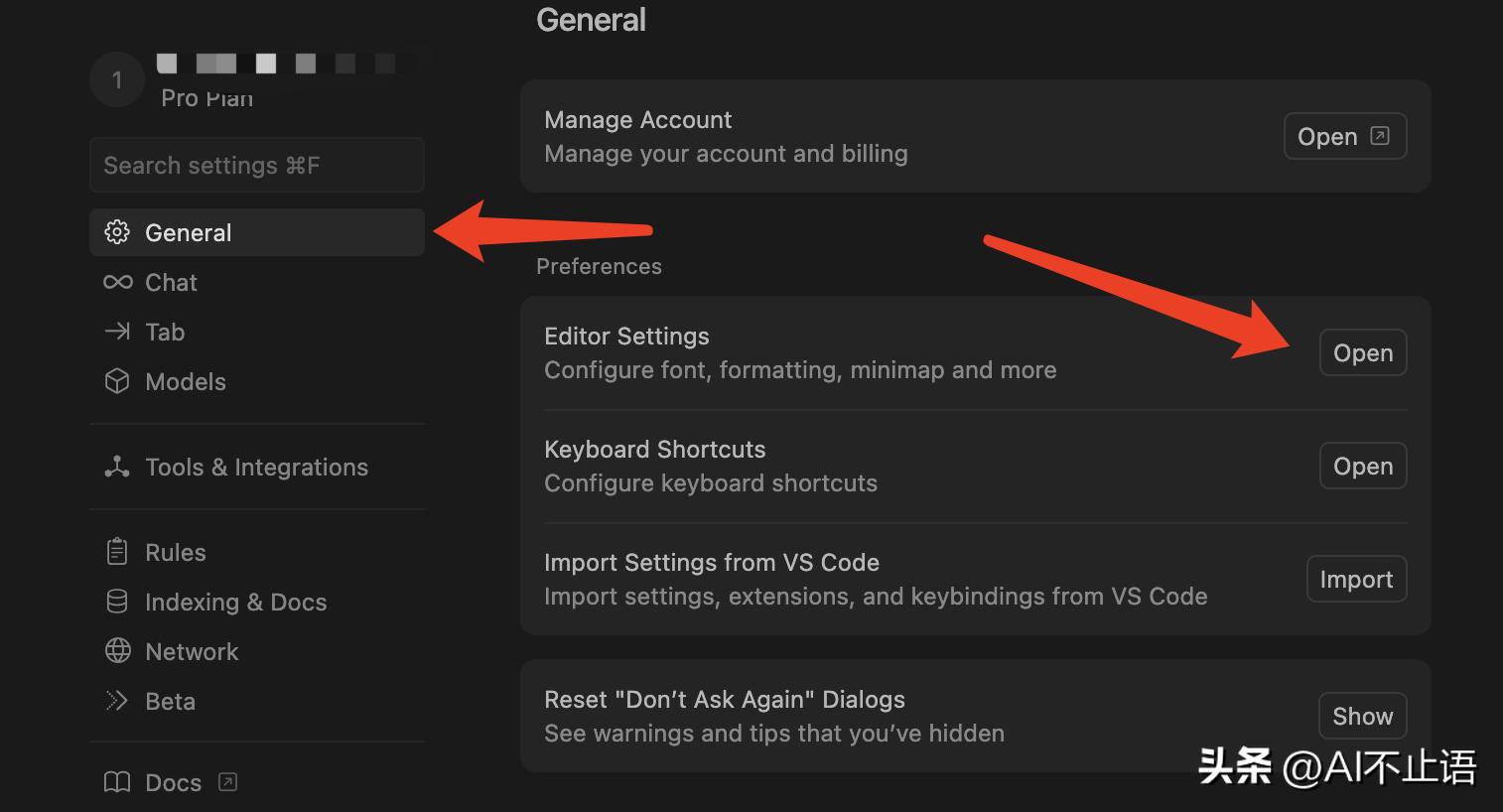 - 打开Cursor设置(使用快捷键Ctrl+Shift+J)