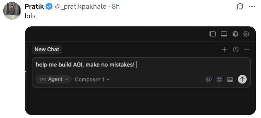 有人甚至开玩笑建议让Cursor 2.0来创建AGI。