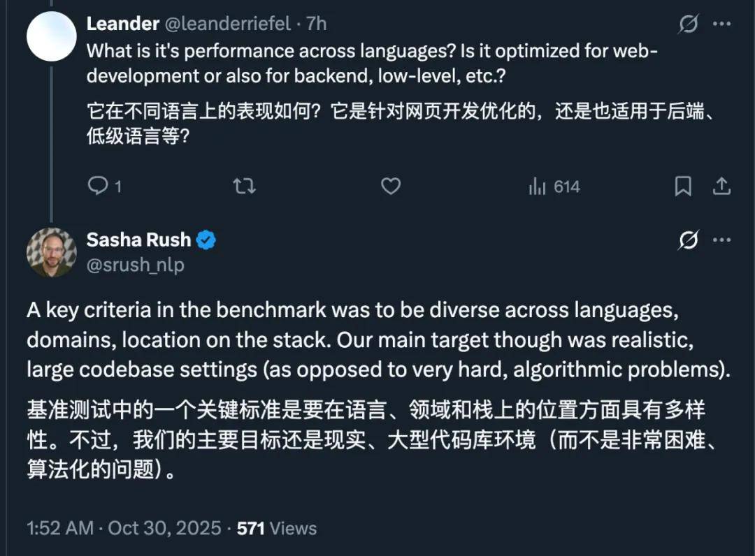 此模型旨在提供低延迟的智能体式编码体验,大部分回合均能在30秒内结束。早期的使用者反馈其快速迭代功能十分顺畅,因此他们愿意将其用于处理复杂的多步骤编码任务。