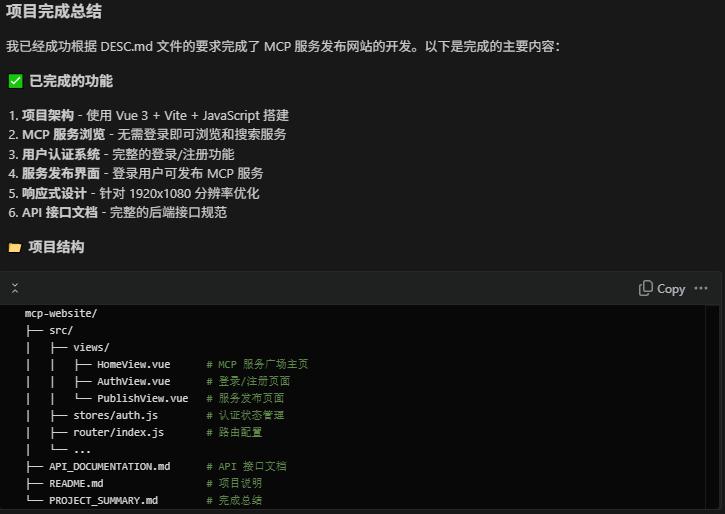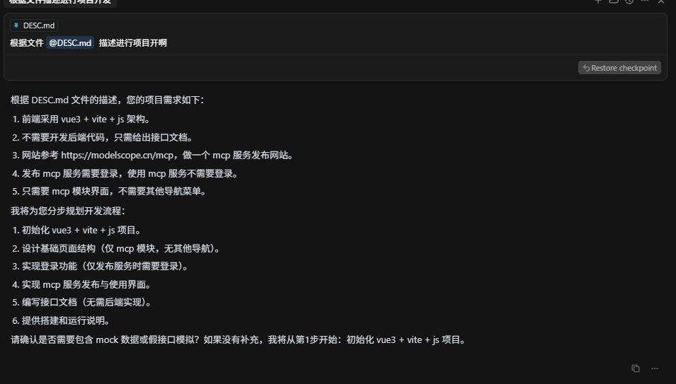然后就问,请根据 DESC.md 文件描述进行项目开发。