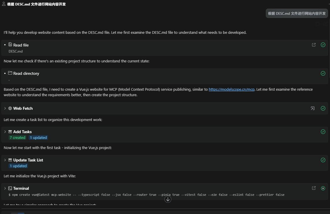然后就问,请根据 DESC.md 文件描述进行项目开发。