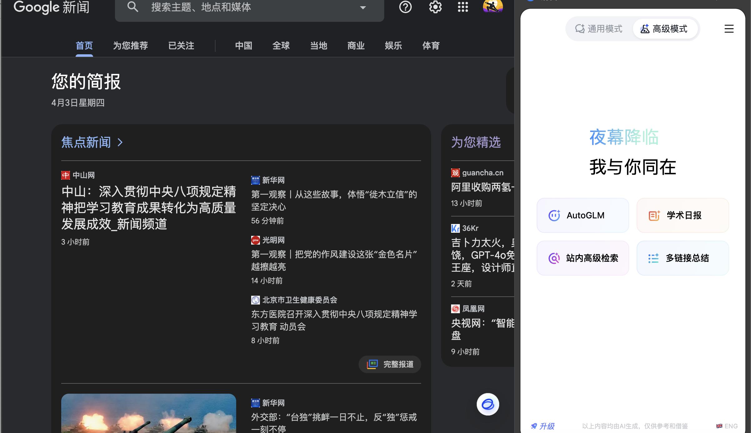 这里提醒一下,大家在客户端或者网页端都是可以使用智谱的沉思的,无论你有没有google插件,只是说你想要用autoglm的话,你还需要进行下一步地操作。