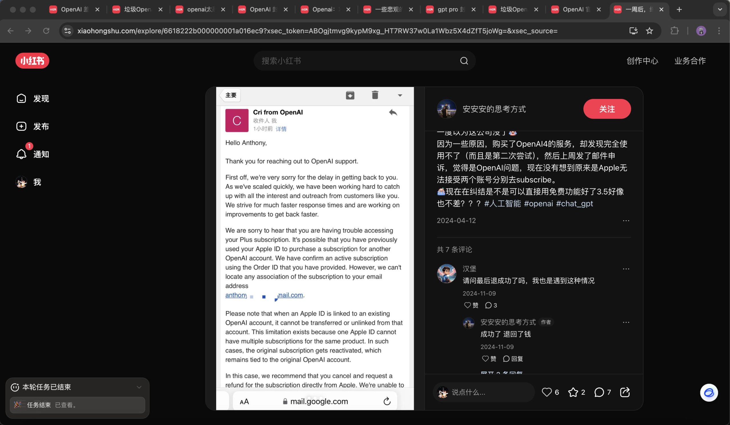##你是一位OpenAI的公关团队人员,你现在阅读最近一周关于小红书的帖子,找出一位情绪化最严重的帖子,然后进行友好的用户回复