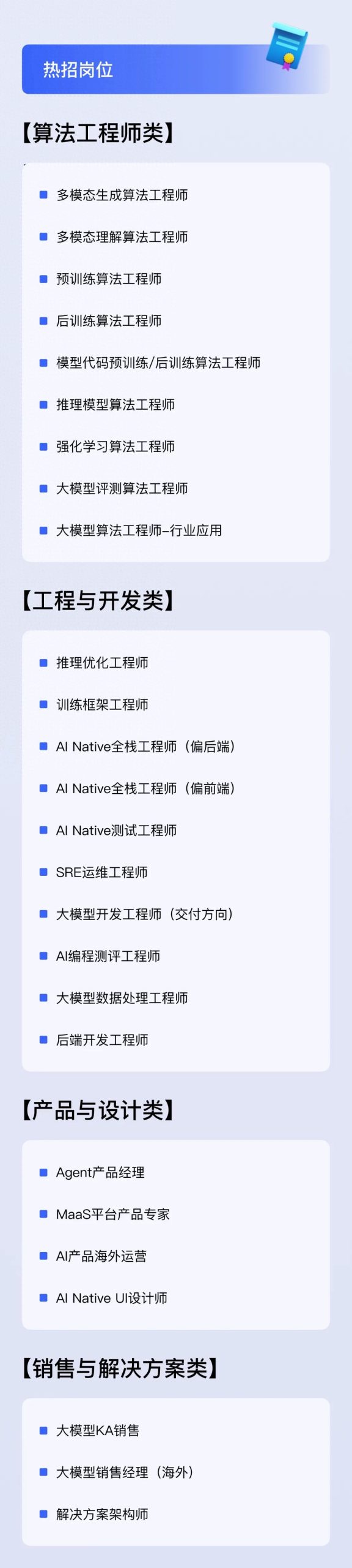 界面新闻注意到,智谱微信官方公众号曾于昨日发布招聘公告,招聘的岗位包括算法工程师、工程与开发类、产品与设计类、销售与解决方案类等,共计47个。但智谱并未明确列出每类岗位的具体职位要求。