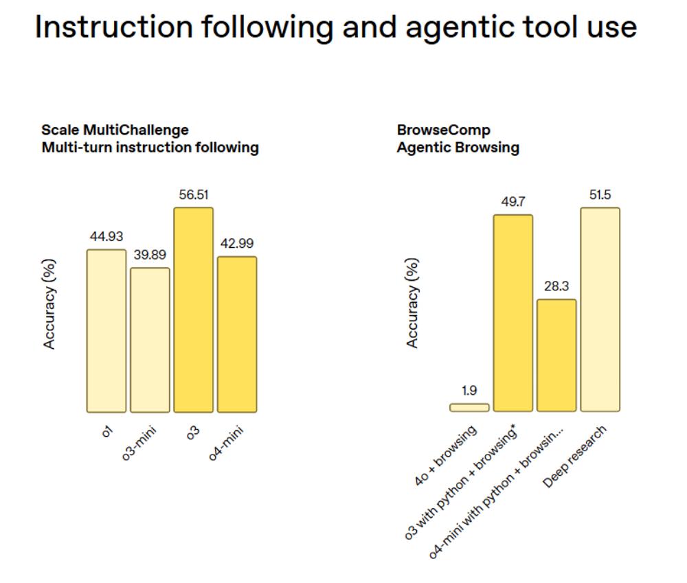 ▲OpenAI不同模型的指令遵循和代理工具使用对比数据