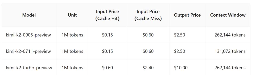 Kimi-K2-0905 在 API 定价方面展现了强烈的竞争力。