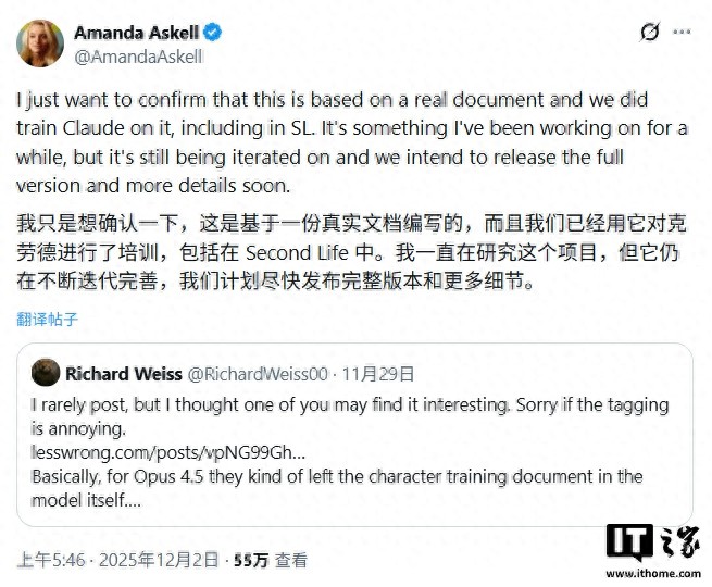 随后,Anthropic 公司的伦理学者 Amanda Askell 在社交平台 X 上确认了该文件的真实性,并指出泄露的版本较为准确地还原了原始内容。