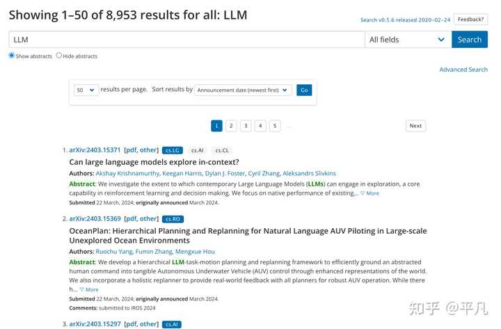 我们这次测试能够同时读取多个文档,根据其 1000 万字的读取能力,理论上可以轻松读取超过 100 个文档。我们在 arxiv 上根据关键词 LLM 搜索了最新的论文。