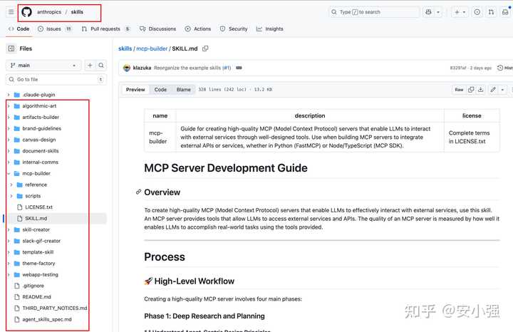 此次,Anthropic 不仅发布了相关概念,还直接开源了一个 GitHub 仓库(链接见:https://github.com/anthropics/skills),其中包含大约 20 个官方 Skill 的源码示例。