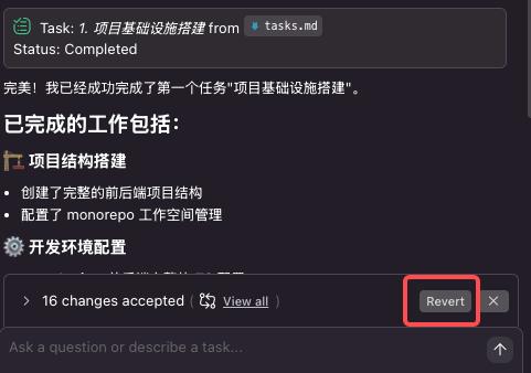 首先会生成完整的需求与设计文档,并将项目清晰地分解为用户系统、项目管理、任务流转等相互关联但独立的模块。
