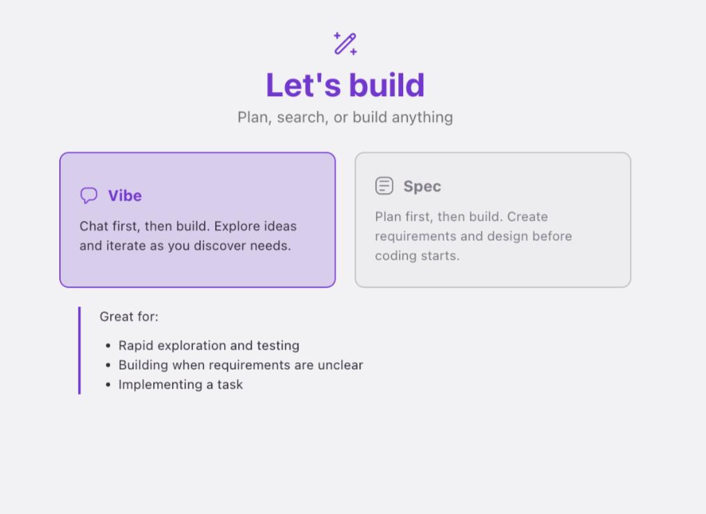 - Vibe 模式:相当于 Cursor 的聊天模式,可以与 AI 进行对话。