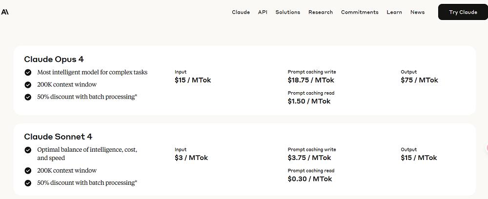 这两款模型可通过 Anthropic API、Amazon Bedrock 以及 Google Cloud 的 Vertex AI 进行调用,定价与之前的 Opus 和 Sonnet 模型相当:Claude Opus 4 的费用为每百万个 token 15 美元 /75 美元(输入 / 输出),Claude Sonnet 4 的定价则为 3 美元 /15 美元。