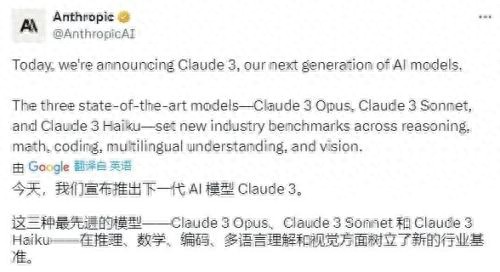 就在本周一,人工智能初创公司 Anthropic 正式发布了 Claude 3,旨在提升对复杂指令的执行能力。该公司指出,Claude 3 在理解复杂任务方面几乎达到了人类的水平,确实是现今技术中最为强大的模型之一。