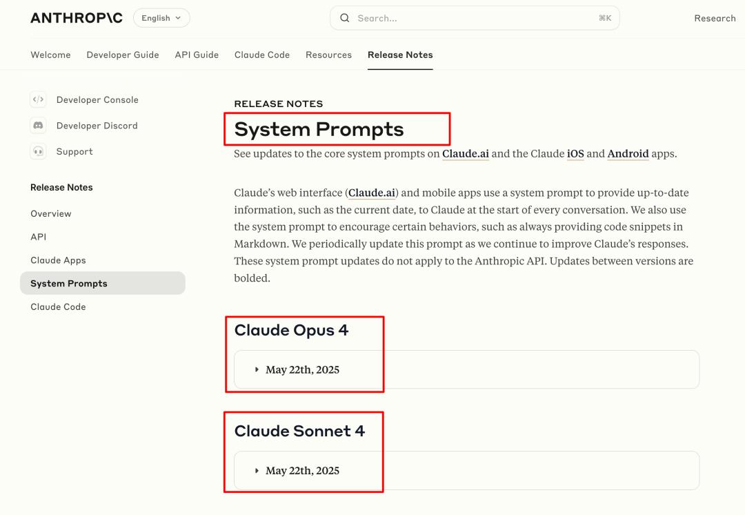 同时更新了 Claude 4 Opus 和 Sonnet 两个模型的最新系统提示词。(其中,Opus 为旗舰版本,而 Sonnet 则是主力版本)