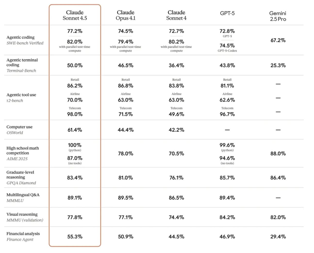 正如 Anthropic 所言,Claude Sonnet 4.5 已成为全球最强的编程模型,其在构建复杂智能体、操作计算机、推理及数学等方面的能力都得到了显著提升。