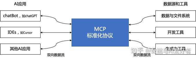 可以把 MCP 看作是 AI 应用的 USB- C 接口。正如 USB- C 为电子设备提供了一种统一的连接方式,MCP 同样为 AI 应用与外部系统之间的连接提供了标准化解决方案。