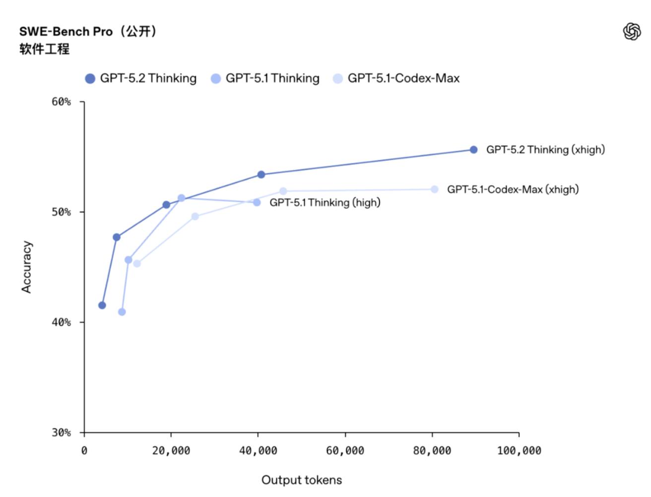 SWE-Bench Pro是一个严格的评估标准,旨在测试模型在实际软件工程中的表现,涉及四种编程语言,难度远超仅测试Python的版本。在这一测试中,GPT-5.2 Thinking取得了55.6%的优异成绩,创下了行业新记录。