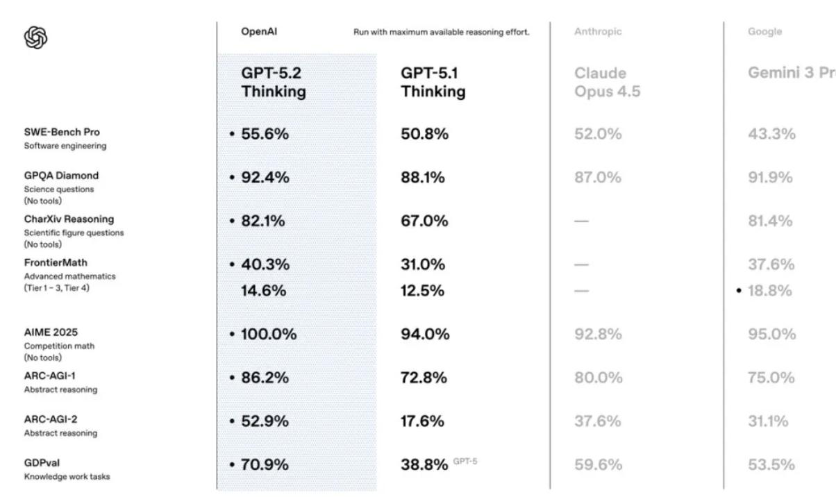 在此次发布中,GPT-5.2 Thinking可谓是重磅之作。