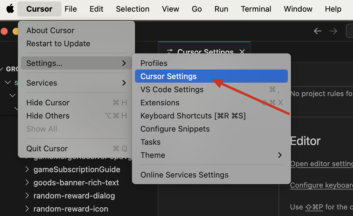 在 Cursor 设置中,可以找到一些常用的配置选项: