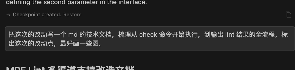 不过,由于技术方案尚未编写,具体的流程还需与同事沟通确认。于是,我直接请求 Cursor 帮我们生成一份此次改动的文档: