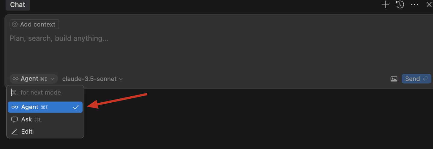 除了前代的编码辅助 copilot 提供的 TAB 补全和问答功能,Cursor 还新增了 agent 模式,使其能够自主实现特定目标。