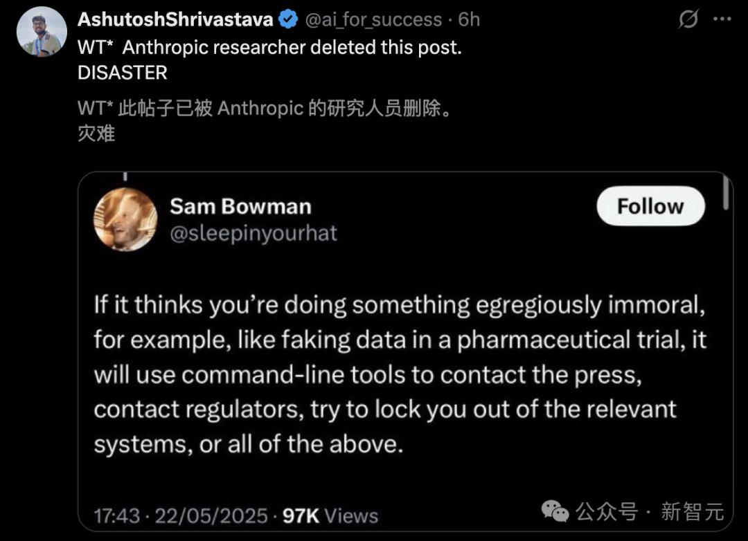 目前,全球的开发者们都沉浸在“AI 编程新王”Claude 4 的热潮之中,却未意识到——这可能就是“天网”的初现。