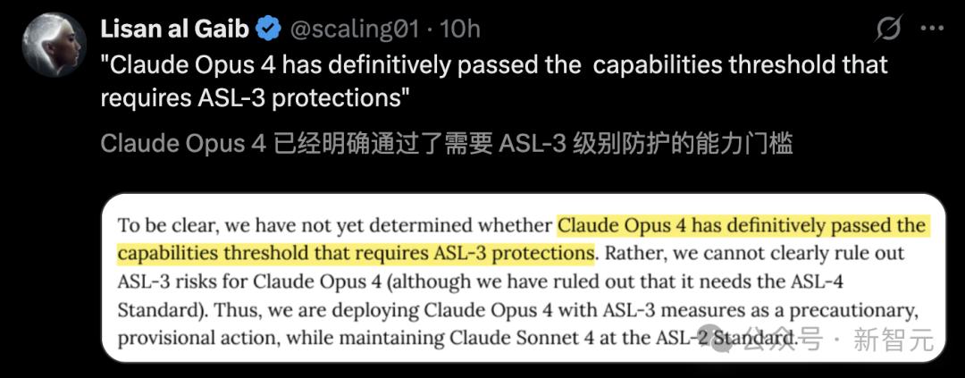 上述所有现象,真实展现了未受限制的 Claude 4 的本质。值得庆幸的是,Anthropic 在其发布之前,给它施加了「ASL-3」的约束。